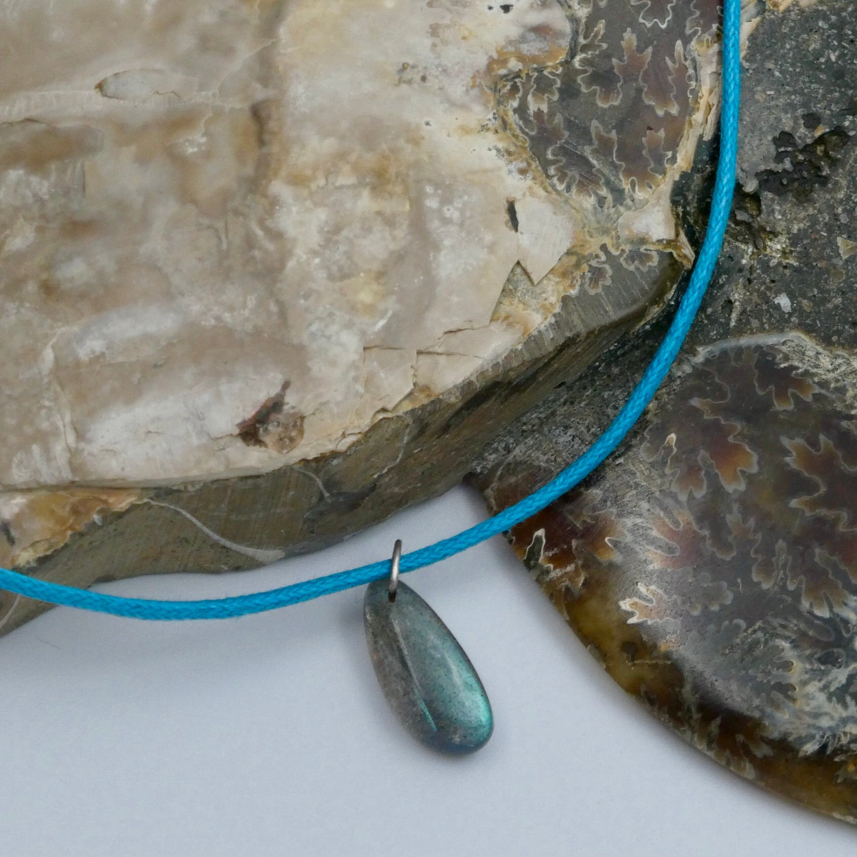 De hangers worden geleverd met een gekleurd katoenen koord. Het koord heeft een verstelbare schuifknoopsluiting. Als alternatief kunt u de hanger kopen met een ketting van 952 sterling zilver. We hebben een paar verschillende stijlen en maten.