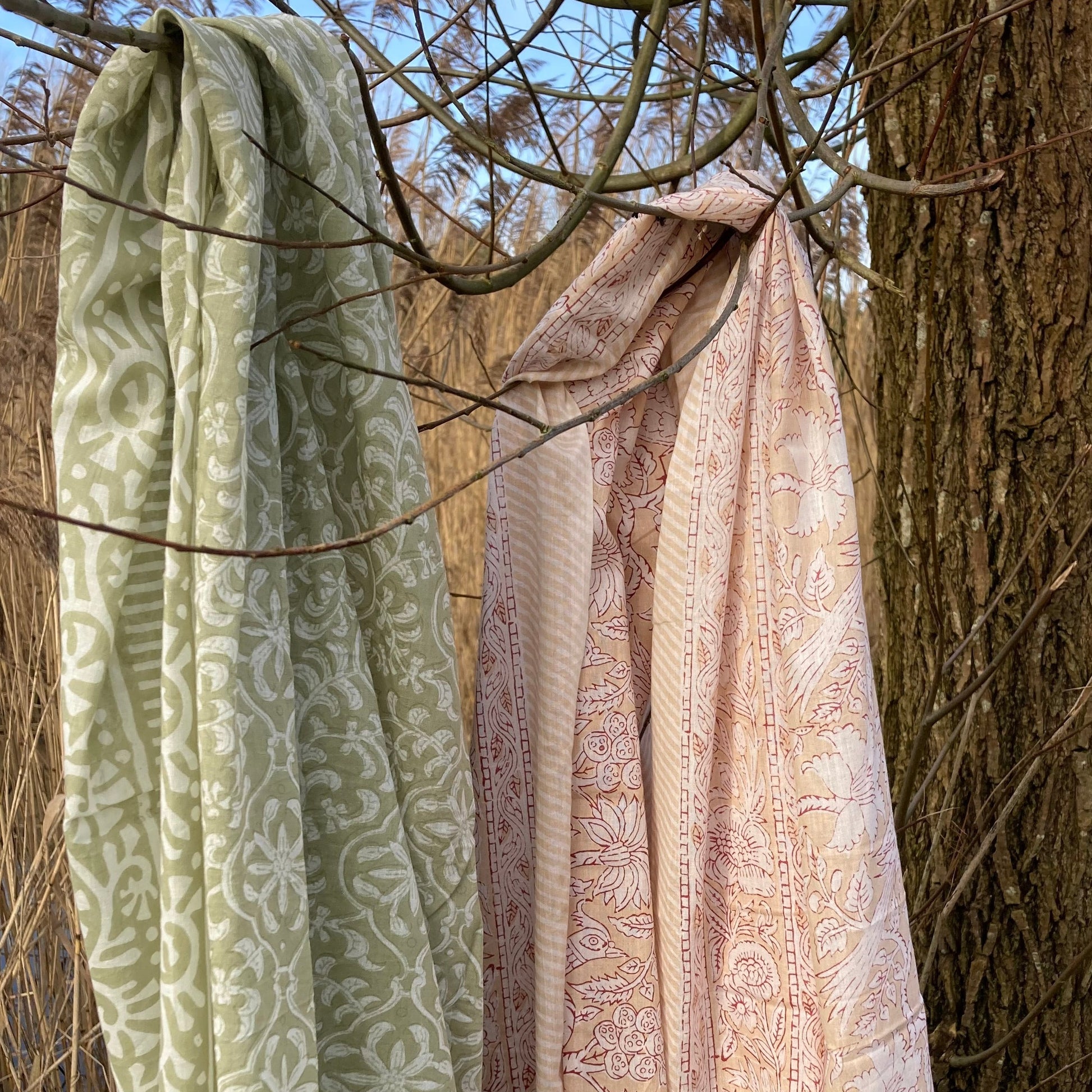 Deze zachtgroene en zandkleurige sarongs stralen elegantie en kalmte uit.